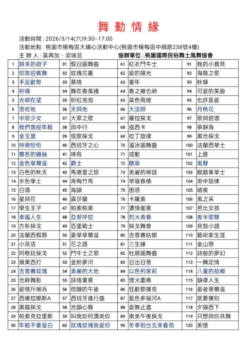標題: [聯歡] 20260314 舞動情緣 桃園市楊梅區大埔心活動中心